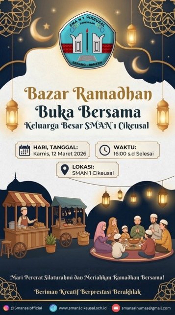 Cikeusal β Dalam rangka menyemarakkan bulan suci Ramadhan serta mempererat tali silaturahmi antarwarga sekolah, SMAN 1 Cikeusal akan menyelenggarakan kegiatan Bazar Ramadhan dan Buka Bersama Keluarga Besar SMAN 1 Cikeusal.